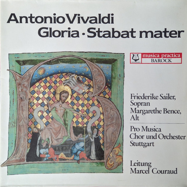 | Další informace: | A Gloria 25:30 B1 Stabat mater 7:59 B2 Motette: "O qui coeli terraeque serenitas" 15:06 Alto Vocals [Alt] – Margarethe Bence Composed By – Antonio Vivaldi Conductor – Marcel Couraud Orchestra – Pro Musica Chor Und Orchester, Stuttgart* Soprano Vocals [Sopran] – Friederike Sailer |