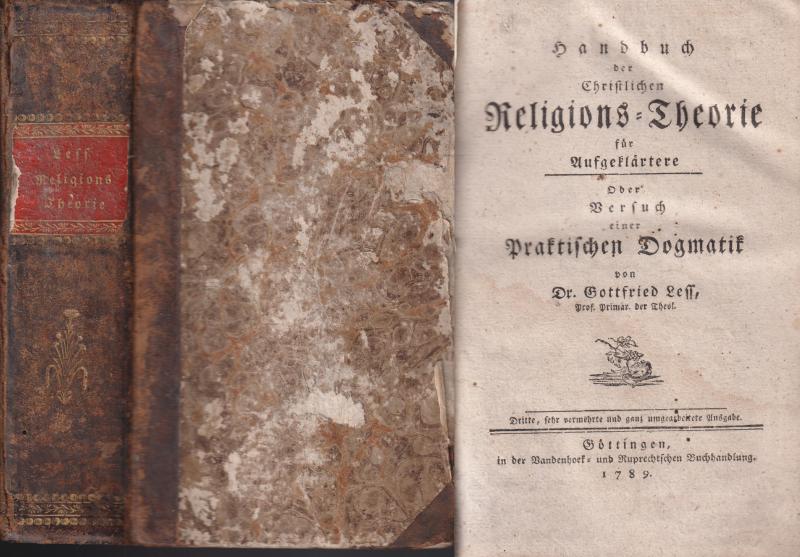 Další informace: | Handbuch der Christlichen Religions-Theorie für Aufgeklärtere. Oder Versuch einer Praktischen Dogmatik von Dr. Gottfried Less, Prof. Primar. der Theol. Polokožená původní vazba je odřená, 808 stran. Příručka křesťanské náboženské teorie pro osvícenější, aneb pokus o praktickou dogmatiku. |