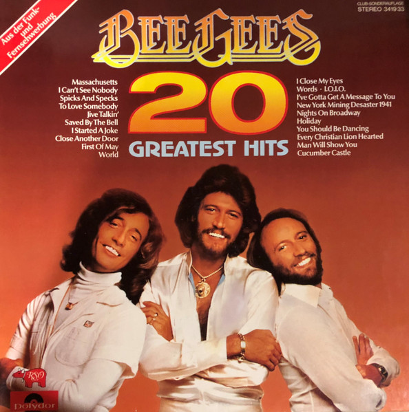 Další informace: | A1 Massachusetts Written-By – B. R. + M. Gibb* 2:22 A2 I Can't See Nobody Written-By – B. Gibb*, R. Gibb* 3:46 A3 Spicks And Specks Written-By – B. Gibb* 2:52 A4 To Love Somebody Written-By – B. Gibb*, R. Gibb* 2:58 A5 Jive Talkin' Written-By – B. R. + M. Gibb* 3:43 A6 Saved By The Bell Written-By – R. Gibb* 3:03 A7 I Started A Joke Written-By – B. R. + M. Gibb* 3:04 A8 Close Another Door Written-By – B. R. + M. Gibb* 3:29 A9 First Of May Written-By – B. R. + M. Gibb* 2:48 A10 World Written-By – B. R. + M. Gibb* 3:12 B1 Words Written-By – B. R. + M. Gibb* 3:13 B2 I Close My Eyes Written-By – B. R. + M. Gibb* 2:22 B3 I.O.I.O. Written-By – B. Gibb*, M. Gibb* 2:52 B4 I've Gotta Get A Message To You Written-By – B. R. + M. Gibb* 2:59 B5 New York Mining Disaster 1941 Written-By – B. Gibb*, R. Gibb* 2:09 B6 Nights On Broadway Written-By – B. R. + M. Gibb* 4:32 B7 Holiday Written-By – B. Gibb*, R. Gibb* 2:52 B8 You Should Be Dancing Written-By – B. R. + M. Gibb* 4:17 B9 Every Christian Lion Hearted Man Will Show You Written-By – B. R. + M. Gibb* 3:32 B10 Cucumber Castle Written-By – B. Gibb*, R. Gibb* 2:04 |
