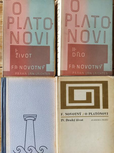 | Další informace: | 4 svazky, komplet. Dva díly brožované, dva vázané. I. díl Život, 318 stran. II. díl Dílo, 498 stran, III. díl Filosofie, 622 stran, IV. díl Druhý život, 947 stran. Edice: Laichterův výbor nejlepších spisů poučných. František Novotný od roku 1915 do roku 1961 postupně přeložil a úvody doprovodil celé Platónovo dílo. Tento již sám o sobě ojedinělý počin završil unikátní tetralogií O Platonovi I–IV (Život, Dílo, Filosofie, Druhý život, 1948–1970), která je dosud jediným komplexním dílem o Platónovi v češtině. Velmi dobrý stav. |