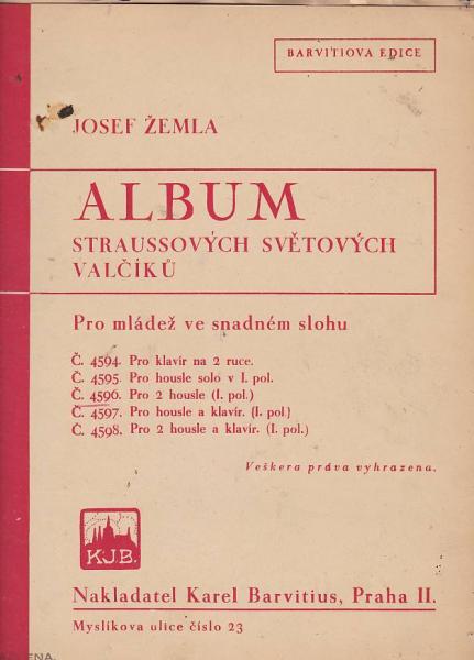 ALBUM STRAUSSOVÝCH SVĚTOVÝCH VALČÍKŮ PRO MLÁDEŽ VE SNADNÉM SLOHU Č.4596 -PRO 2 HOUSLE / I.POL. /