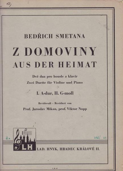 Z DOMOVINY -DVĚ DUA PRO HOUSLE A KLAVÍR -I. A-DUR -II. G-MOLL