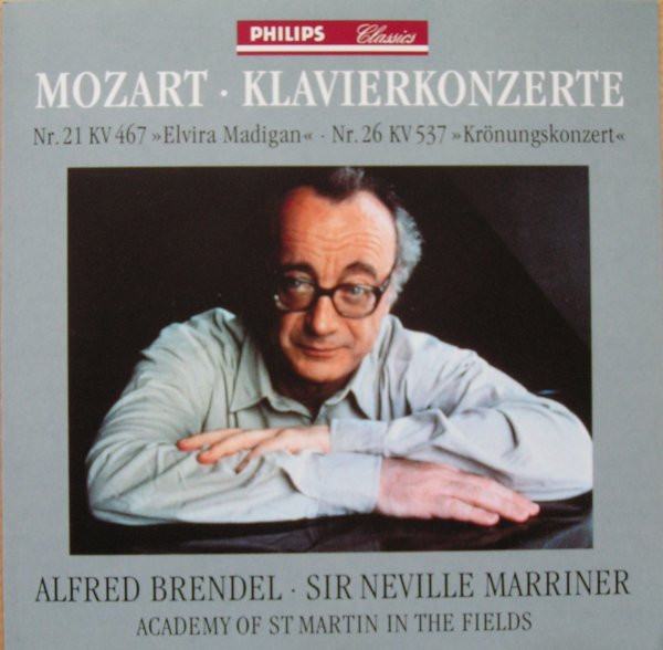 | Další informace: | CD. Alfred Brendel • Sir Neville Marriner • Academy Of St Martin In The Fields. Konzert Für Klavier Und Orchester Nr. 21 C-Dur KV 467 1 (Allegro Maestroso) 13:39 2 Andante 6:34 3 Allegro Vivace Assai 6:14 Konzert Für Klavier Und Orchester Nr. 26 D-Dur KV 537 4 Allegro Cadenza [Kadenz] – Alfred Brendel 14:22 5 (Larghetto) 6:09 6 (Allegretto) 10:09. Art Direction – Manfred Waller Cadenza [Kadenzen] – Radu Lupu (tracks: 1 to 3) Compiled By – Hans Möller (2) Composed By – Wolfgang Amadeus Mozart Conductor – Sir Neville Marriner Liner Notes – Uwe Kraemer Orchestra – Academy Of St Martin In The Fields* Photography By [Alfred Brendel] – Isolde Ohlbaum Piano – Alfred Brendel Producer – Eric Smith*, Volker Strauss |