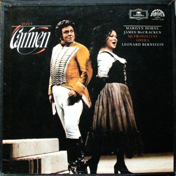 | Další informace: | 3 LP. Marilyn Horne, James McCracken, Metropolitní Opera, Leonard Bernstein. A1 Předehra A2 1. Dějství B 1. Dějství (Dokončení) C1 Intermezzo C2 2. Dějství D1 2. Dějství (Dokončení) D2 Intermezzo D3 3. Dějství E 3. Dějství (Pokračování) F1 3. Dějství (Dokončení) F2 Intermezzo F3 4. Dějství Baritone Vocals [Escamillo, Zápasník S Býky] – Tom Krause Baritone Vocals [Morales, Strážmistr] – Raymond Gibbs Bass Vocals [Zuniga, Poručík] – Donald Gramm Chorus [Děti] – Sbor Manhattanské Opery* Chorus [Španělský Lid, Vojáci, Prodavačky, Seňory, Kavalíři, Důstojníci, Cikáni, Cikánky, Podloudníci, Toreadoři, Soudci, Sluhové] – Dětský Sbor Metropolitní Opery* Composed By – Georges Bizet Conductor – Leonard Bernstein Libretto By – Henri Meilhac, Ludovic Halévy Mezzo-soprano Vocals [Carmen, Cikánka] – Marilyn Horne Orchestra – Orchestr Metropolitní Opery* Soprano Vocals [Frasquita, Podloudnice] – Marcia Baldwin Soprano Vocals [Mercedes, Podloudnice] – Colette Boky Soprano Vocals [Micaela, Selská Dívka] – Adriana Maliponte Tenor Vocals [Dancairo, Podloudník, Lillas Pastia, Krčmář] – Russell Christopher Tenor Vocals [Don José, Strážmistr] – James Mc Cracken* Tenor Vocals [Remendado, Podloudník] – Andrea Velis Booklet: Opera o 4 dějstvích, podle novely Prospera Mériméea [An opera in 4 acts, after a novel by Prosper Mérimée] Nahrávka Polydor International GmbH [A Polydor International GmbH recording] Center labels: Made in Czechoslovakia A Deutsche Grammophon Recording Gramofonový klub [Release available to club subscribers only, not in regular retail stores] ℗ 1980 Opera o 4 dějstvích, podle novely P. Mériméa Nahrávka Polydor International |