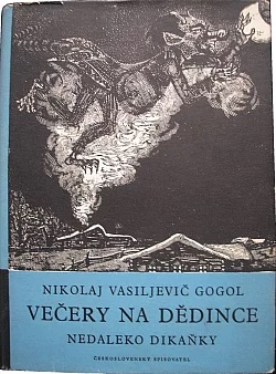 | Další informace: | Vázaná s obálkou, 209 stran. Dřevoryty vyzdobil Jiří Šindler. Cyklus tvoří osm nepříliš dlouhých příběhů stylizovaných jako vyprávění prostých vesničanů, kteří se scházejí na přástkách u včelaře Rezatého Paňka, který jednotlivé příběhy uvádí a komentuje je. Příběhy jsou stylisticky připodobněny ústnímu projevu, a to pomocí vysoké frekvence dialogů a jiných bezprostředních postupů jako je pláč, kletby, řečnické otázky, časté odbočky, zabývání se nepodstatnými detaily atp. Střídají se v nich smích i zármutek, komika i hrůza, přítomnost i minulost, vtipně odpozorovaný reálný život i fantastické motivy, prvky lidového básnictví i věcné vesnické scény. Děj samotných povídek se točí především okolo jarmarku ve vesnici Soročince a s ním spojených pověr a radovánek, a odpovídá naivnímu lidovému podvědomí, které zcela bezelstně věřilo v existenci nadpřirozených jevů (ježibaba, rusalky, čerti atp.) Přestože jde o romantické dílo, podařilo se Gogolovi již zde vytvořit realistické obrazy života ukrajinské vesnice, mnohde již prozrazující svým humorným zabarvením budoucího satirika. V popředí je ovšem především představa moudrého lidového, městem nezkaženého společenství jako nositele hlavních duševních a mravních hodnot. |