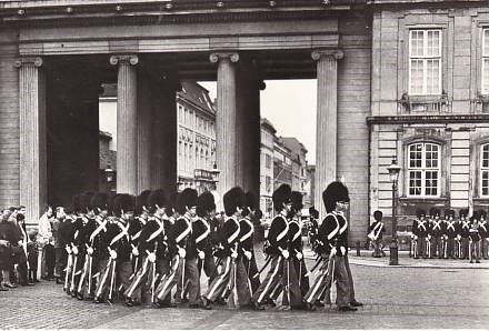 KODAŇ, AMALIENBORG, KRÁLOVSKÁ GARDA PŘI STŘÍDÁNÍ STRÁŽÍ / DÁNSKO /