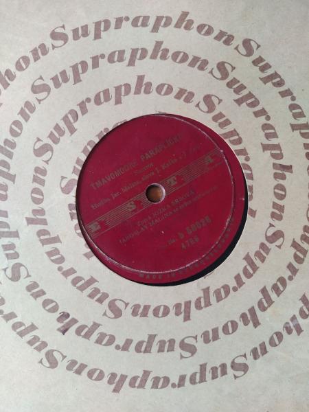 | Další informace: | Šelaková deska. Shellac, 10", 78 RPM. A Stín Tvůj Lyrics By [Slova] – Karel Kozel Music By [Hudba] – Jar. Malina* Soloist, Violin [Houslové Sólo] – V. Vlásek* AA Tmavomodré Paraplíčko Lyrics By [Slova] – J. Pelc*, J. Kafka* Music By [Hudba] – Jar. Malina* Leader – Jaroslav Malina Orchestra – Jaroslav Malina Se Svým Orchestrem Vocals [Zpívá] – Jožka Srbová. |