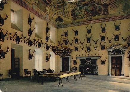 HLUBOKÁ NAD VLTAVOU, LOVECKÝ ZÁMEK OHRADA, LOVECKÝ SÁL S TROFEJEMI
