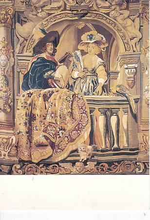ZÁMEK NÁCHOD, TAPISERIE BRUSEL, DÁMA S KAVALÍREM NA BALKÓNĚ