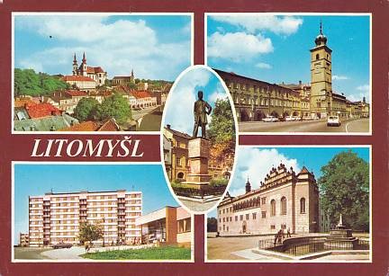 LITOMYŠL, POHLED NA HISTORICKOU ČÁST MĚSTA, NÁMĚSTÍ, POMNÍK BEDŘICHA SMETANY, NOVÁ VÝSTAVBA, RENESANČNÍ ZÁMEK