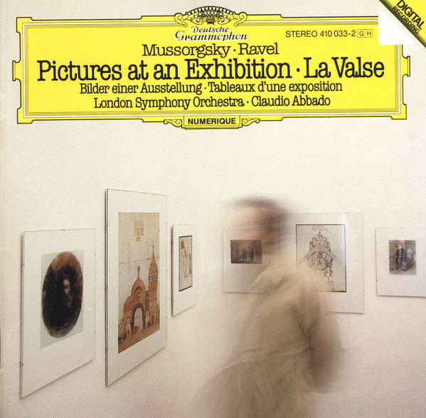 | Další informace: | CD. Pictures At An Exhibition 1 Promenade (Allegro Giusto, Nel Modo Russico; Senza Allegrezza, Ma Poco Sostenuto) 1:44 2 I Gnomus (Vivo) 2:22 3 Promenade (Moderato Comodo E Con Delicatezza) 1:03 4 Il Il Vecchio Castello (Andante) 4:21 5 Promenade (Moderato Non Tanto, Pesante) 0:33 6 III Tuileries (Allegretto Non Troppo, Capriccioso) 1:03 7 IV Bydlo (Sempre Moderato, Pesante) 3:16 8 Promenade (Tranquillo) 0:44 9 V Ballet Des Petits Poussins Dans Leurs Coques (Scherzino: Vivo Leggiero 1:12 10 VI Samuel Goldenberg Und Schmuyle (Andante) 2:06 11 VII Limoges: Le Marché (Allegretto Vivo, Sempre Scherzando) 1:15 12 VIII Catacombae: Sepulchrum Romanum (Largo) 1:56 13 Cum Mortuis In Lingua Mortua (Andante Non Troppo, Con Lamento) 2:01 14 IX La Cabane De Baba-Yaga Sur Des Pattes De Poule (Allegro Con Brio, Feroce - Andante Mosso - Allegro Molto) 3:29 15 X La Grande Porte De Kiev (Allegro Alla Breve. Maestoso. Con Grandezza) 5:43 La Valse - Poème Chorégraphique 16 Mouvement De Valse Viennoise - Un Peu Plus Modéré - 1er Mouvement - Assez Animé 12:25 Phonographic Copyright ℗ – Polydor International GmbH Printed By – Neef OHG, Wittingen Manufactured By – PolyGram Art Direction – Hartmut Pfeiffer Composed By – Maurice Ravel (tracks: 16), Modest Mussorgsky (tracks: 1 to 15) Conductor – Claudio Abbado Edited By [Editing] – Joachim Niss Engineer [Recording Engineer] – Klaus Hiemann Liner Notes – Felix Aprahamian, Wolfgang Dömling Liner Notes [French Translation Of Felix Aprahamian Notes] – Jacques Fournier Liner Notes [Italian Translation Of Wolfgang Dömling Notes] – Gabriele Cervone Orchestra – London Symphony Orchestra Orchestrated By [Orchestration] – Maurice Ravel (tracks: 1 to 15) Photography By [Cover Photo] – Harro Wolter, Kjærsti Strindberg Producer, Recording Supervisor – Rainer Brock. |