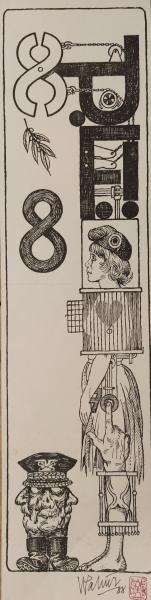 | Další informace: | Signovaná grafika, rozměr 42 x 10,5 cm. |