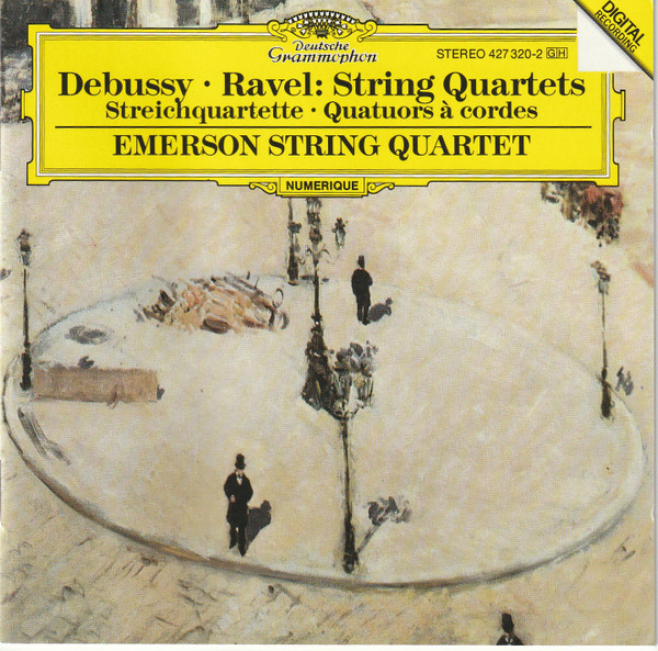 | Další informace: | CD. String Quartet In G Minor, Op. 10 = Streichquartett G-moll Op. 10 = Quatuor À Cordes En Sol Mineur, Op. 10 = Quartetto Per Archi In Sol Minore, Op. 10 Composed By – Claude Debussy 1 I. Animé Et Très Décidé 6:23 2 II. Assez Vif Et Bien Rythmé 3:43 3 III. Andantino, Doucement Expressif 7:38 4 IV. Très Modéré – Très Mouvementé Et Avec Passion 6:57 String Quartet In F Major = Streichquartett F-dur = Quatuor À Cordes En Fa Majeur = Quartetto Per Archi In Fa Maggiore Composed By – Maurice Ravel 5 I. Allegro Moderato 8:10 6 II. Assez Vif – Très Rythmé 5:55 7 III. Très Lent 8:33 8 IV. Vif Et Agité 5:14. Art Direction – Franz Neuß Booklet Editor – Lucie Kayas Cover [«Un refuge, boulevard Haussmann»], Painting [Painting By] – Gustave Caillebotte Ensemble [String Quartet] – Emerson String Quartet Liner Notes – Dietmar Holland, Harry Halbreich, Paolo Gallarati, Paul Griffiths (4) Painting [Painting of Debussy By] – Henri Pinta Photography By [Photo of Emerson String Quartet] – Christian Steiner (6) Photography By [Photo of Ravel] – Archiv Für Kunst Und Geschichte Producer [Produced By], Engineer [Engineered By] – Max Wilcox Viola [Emerson String Quartet, Alto] – Lawrence Dutton Violin [Emerson String Quartet, 1st Violin] – Eugene Drucker (tracks: 1 to 4), Philip Setzer (tracks: 5 to 8) Violin [Emerson String Quartet, 2nd Violin] – Eugene Drucker (tracks: 5 to 8), Philip Setzer (tracks: 1 to 4) Violoncello [Emerson String Quartet] – David Finckel |