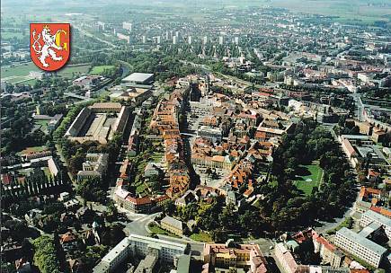 HRADEC KRÁLOVÉ, LETECKÝ POHLED NA HISTORICKOU ČÁST MĚSTA