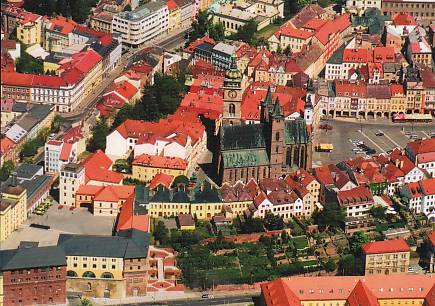 HRADEC KRÁLOVÉ, LETECKÝ POHLED NA DOMINANTY MĚSTA-KATEDRÁLU SV. DUCHA A BÍLOU VĚŽ