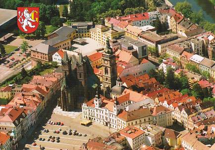 HRADEC KRÁLOVÉ, LETECKÝ POHLED NA DOMINANTY MĚSTA, V POZADÍ REGIOCENTRUM "NOVÝ PIVOVAR"
