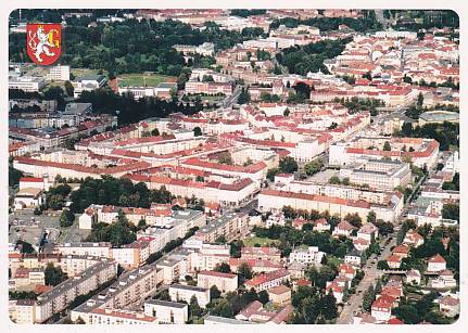 HRADEC KRÁLOVÉ, LETECKÝ POHLED NA "MODERN" VÝSTAVBU Z PRVNÍ POLOVINY MINULÉHO STOLETÍ