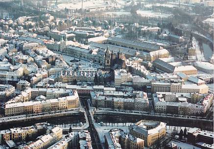 HRADEC KRÁLOVÉ, LETECKÝ POHLED NA HISTORICKOU ČÁST MĚSTA V ZIMĚ