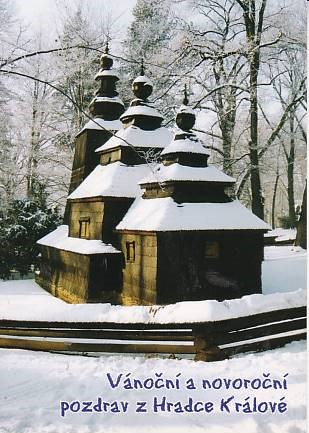 VÁNOČNÍ A NOVOROČNÍ POZDRAV Z HRADCE KRÁLOVÉ, DŘEVĚNÝ KOSTELÍK SV. MIKULÁŠE V JIRÁSKOVÝCH SADECH