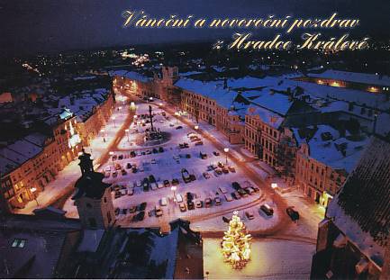 VÁNOČNÍ A NOVOROČNÍ POZDRAV Z HRADCE KRÁLOVÉ, POHLED NA VELKÉ NÁMĚSTÍ Z BÍLÉ VĚŽE