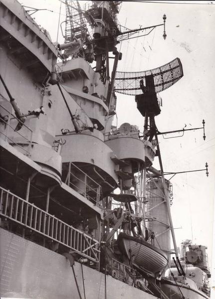 ČERNOBÍLÁ FOTOGRAFIE TORPÉDOBOREC USS WILLIS A. LEE V ROCE 1966 V DOKU V BOSTONSKÉM PŘÍSTAVU