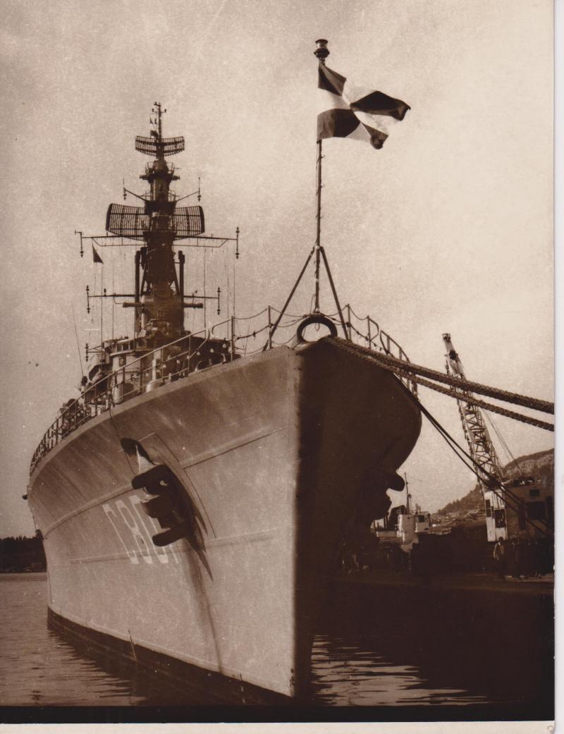 ČERNOBÍLÁ FOTOGRAFIE TORPÉDOBOREC USS WILLIS A. LEE V ROCE 1966 V DOKU V BOSTONSKÉM PŘÍSTAVU