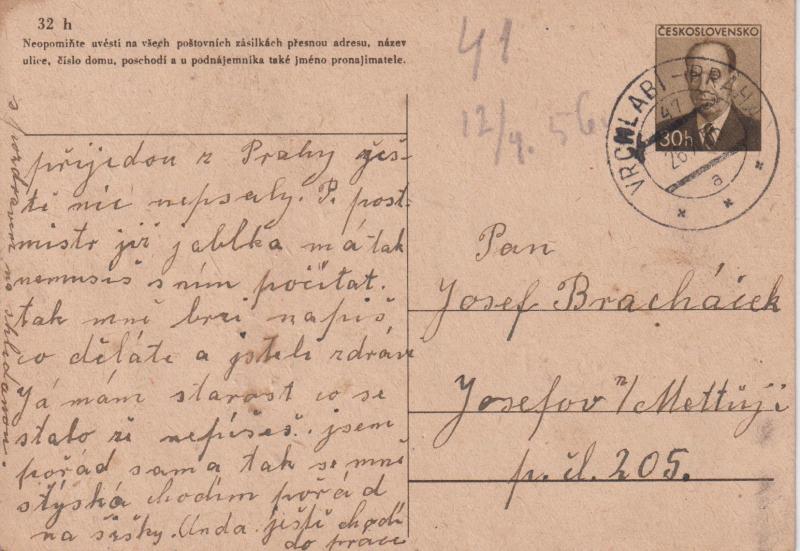 KORESPONDENČNÍ LÍSTEK ZE DNE 1956