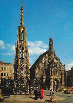 BEAUTIFUL FOUNTAIN AND THE CHURCH OF OUR LADY, NÜRNBERG / NĚMECKO /