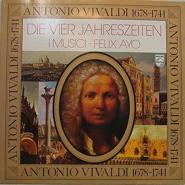 | Další informace: | Concerto Nr. 1 E-dur, op. 8,1 PV 241 A1 >>La Primavera<< Allegro • Largo • Allegro (Danza Pastorale) Concerto Nr. 2 g-moll, op. 8,2 PV 336 A2 >>L'estate<< Allegro Non Molto - Allegro Adagio - Presto - Adagio Presto (Tempo Impetuoso D'estate) Concerto Nr. 3 F-dur, op. 8,3 PV 257 B1 >>L'autunno<< Allegro (Ballo, E Canto De' Villanelli) Adagio Molto (Ubriachi Dormienti) Allegro (La Caccia) Concerto Nr. 4 f-moll, op. 8,4 PV 442 B2 >>L'inverno<< Allegro Non Molto • Largo • Allegro Composed By – Antonio Vivaldi Orchestra – I Musici Violin – Felix Ayo |