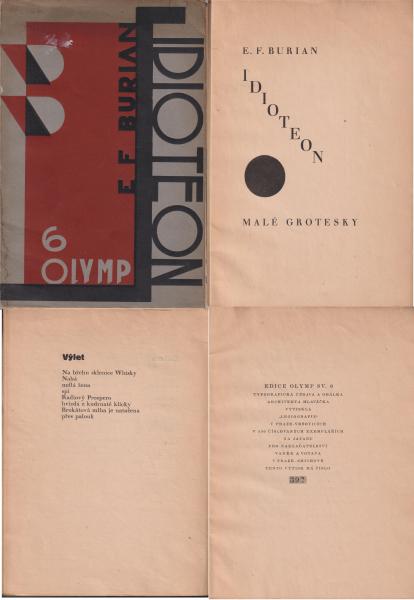 | Další informace: | Sbírka zčásti dadaistických básní. Původní brož s mírně ušpiněnou obálkou, 26 stran. Číslovaný výtisk, 392 / 550 na japanu. Edice: Olymp (6.) Typografie a obálka architekt Hlaváček. Dobrý stav. |