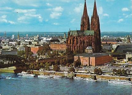 BLICK ZUM DOM MIT DAMPFERANLEGESTELLEN, KÖLN AM RHEIN / NĚMECKO /