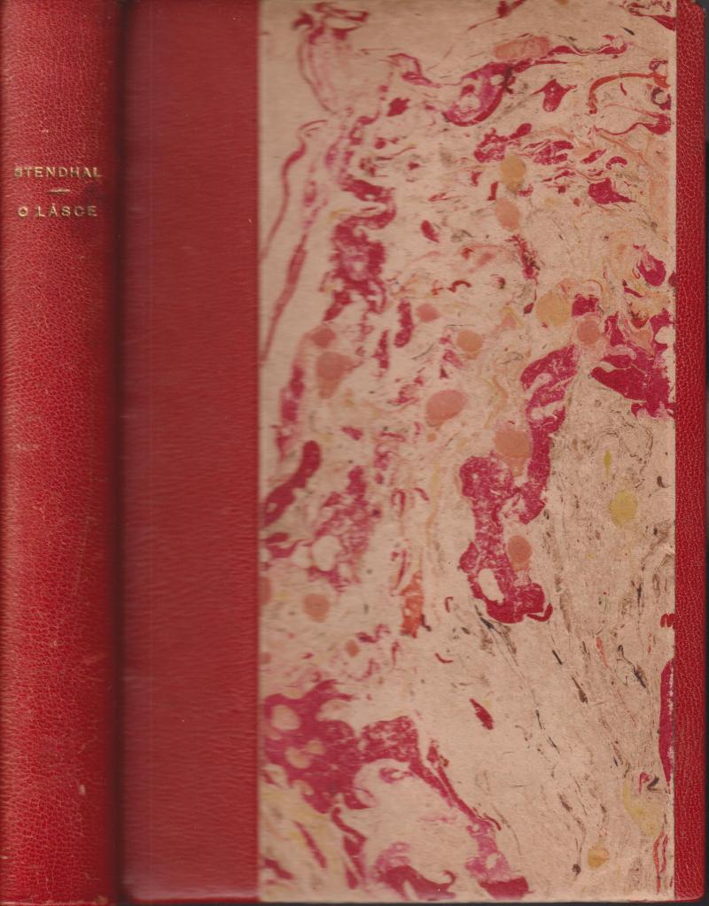 | Další informace: | Polokožená vazba s vevázanou obálkou, zlatá ořízka, 385 stran. Edice: Symposion (43.), typografie a obálka Karel Teige. Přeložili J. Nevařilová, Karel Teige. Stendhal podrobuje ve své mosaice pozorování, úvah, aforismů a anekdotických příběhů lásku a její formy u různých národů, s nimiž se dostal jako napoleonský důstojník a později diplomat do styku. Opíraje se kromě toho o udivujíci sčetlost, věnuje zvláště pozornost jejím postupným stavům, „krystalisaci“, a staví proti sobě její buržoasním utilitarismem potlačovanou a vykořisťovanou formu ve Francii a Anglii proti upřímné a nezmrzačené lásce, jak jí žili v tehdejší revoluční Italii. Tuto „duševní nemoc“, kterou se snaží „úzkostlivě přesně vylíčit“, chce mít živelným projevem životní aktivity a ničím nezkresleného citu. |