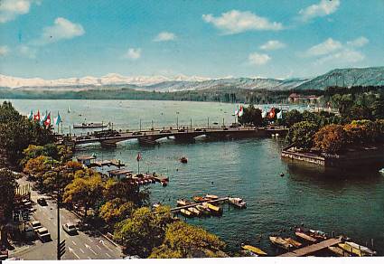 QUAIBRÜCKE MIT ALPEN, ZÜRICH / ŠVÝCARSKO /