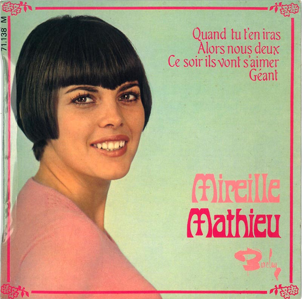 | Další informace: | Singl. 45 RPM, EP. A1 Quand Tu T'en Iras Written-By – E. Sciozilli*, J. Plante* 2:58 A2 Alors Nous Deux Written-By – G. Guenet*, J. Setti* 2:57 B1 Ce Soir Ils Vont S'aimer Written-By – C. Gaubert*, Dousset* 2:06 B2 Géant Written-By – A. Pascal*, P. Mauriat* 2:48 Printed By – G.I.P. Arranged By, Music Director – Paul Mauriat Photography By – Sam Levin* Made in France |