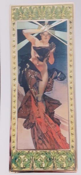 | Další informace: | Pohlednice zlacená, dlouhá, úplně nová, nepopsaná bez razítka a známky, rozměr 10,2x21 cm. |
