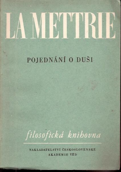 | Další informace: | Brožovaná, 1. vydání, 129 stran, dobrý stav. Výbor z díla II. Spis L’Histoire naturelle de l’âme z r. 1745 je historicky významný jako první publikované materialistické dílo osvícenské doby. Útočí na Descartův dualismus a s použitím lékařských poznatků dovozuje závislost duševního života na funkci organismu a na vnějším světě. |