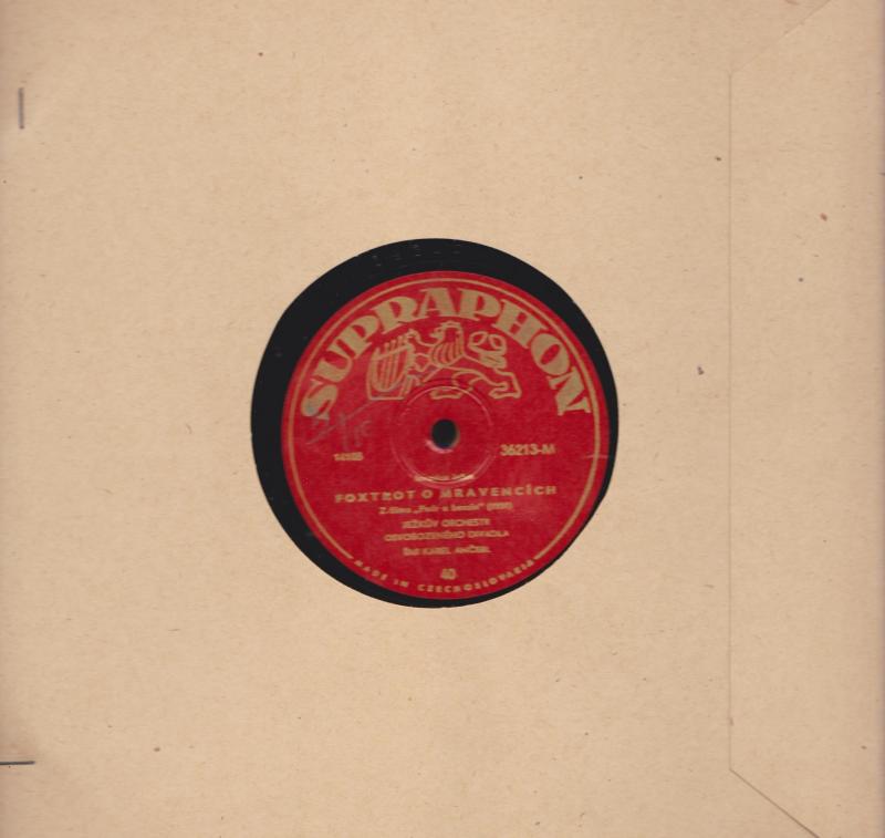 | Další informace: | Šelaková deska, 78. Shellac, 10", Mono, 78 RPM. A Foxtrot O Mravencích Conductor [Řídí] – Karel Ančerl AA Bloody Moon Rhapsody Conductor [Řídí] – Jaroslav Ježek Credits Music By – Jaroslav Ježek Orchestra – Ježkův Orchestr Osvobozeného Divadla* Notes [A] Z filmu "Pudr a beznín" (1931) |