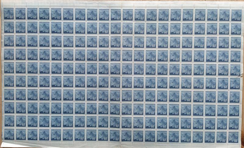 | Další informace: | Kompletní arch 200 známek s okrajem - Lipová ratolest 60 h modrá, Československo. |
