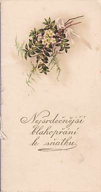 | Další informace: | Dobové přání, 4 listy spojené stužkou, popsané, rozměr 7x13cm. |
