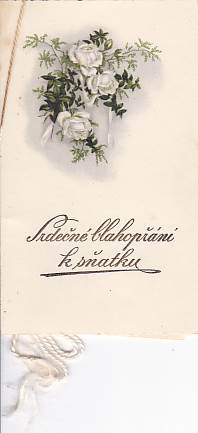 | Další informace: | Dobové, mírně ušpiněné přání, 4 listy spojené stužkou, popsané, rozměr 7x11cm. |
